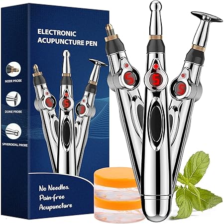 Amazon Com Acupuncture Pen Electro Pain Relief Therapy 2 Massage Heads Electric Shock Therapy Pulse Relief Shock Free Handle Acupressure Tools Acupuncture Massage Pen White Health Household